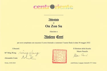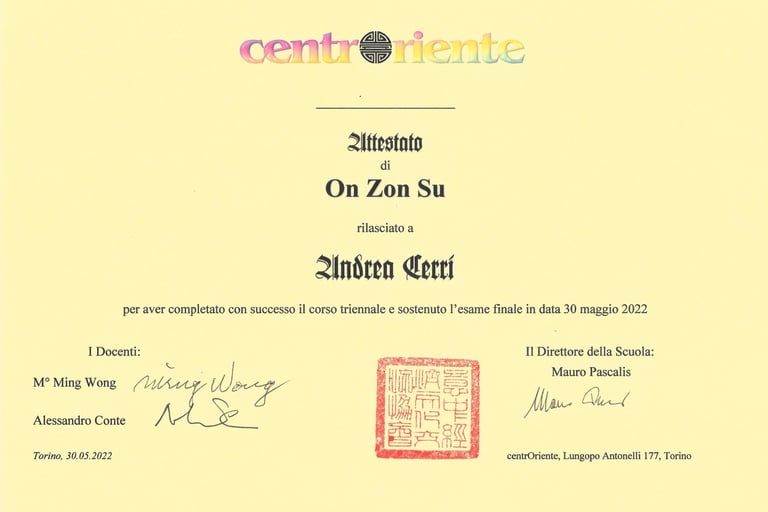 Ho frequentato il corso triennale di riflessologia plantare, con la partecipazione del Maestro e Medico Ming Wong C.Y. ed il suo collaboratore ingegnere Alessandro Conte, trasmettendomi la loro passione e competenza per questo antichissimo metodo di massaggio al piede chiamato On Zon Su.